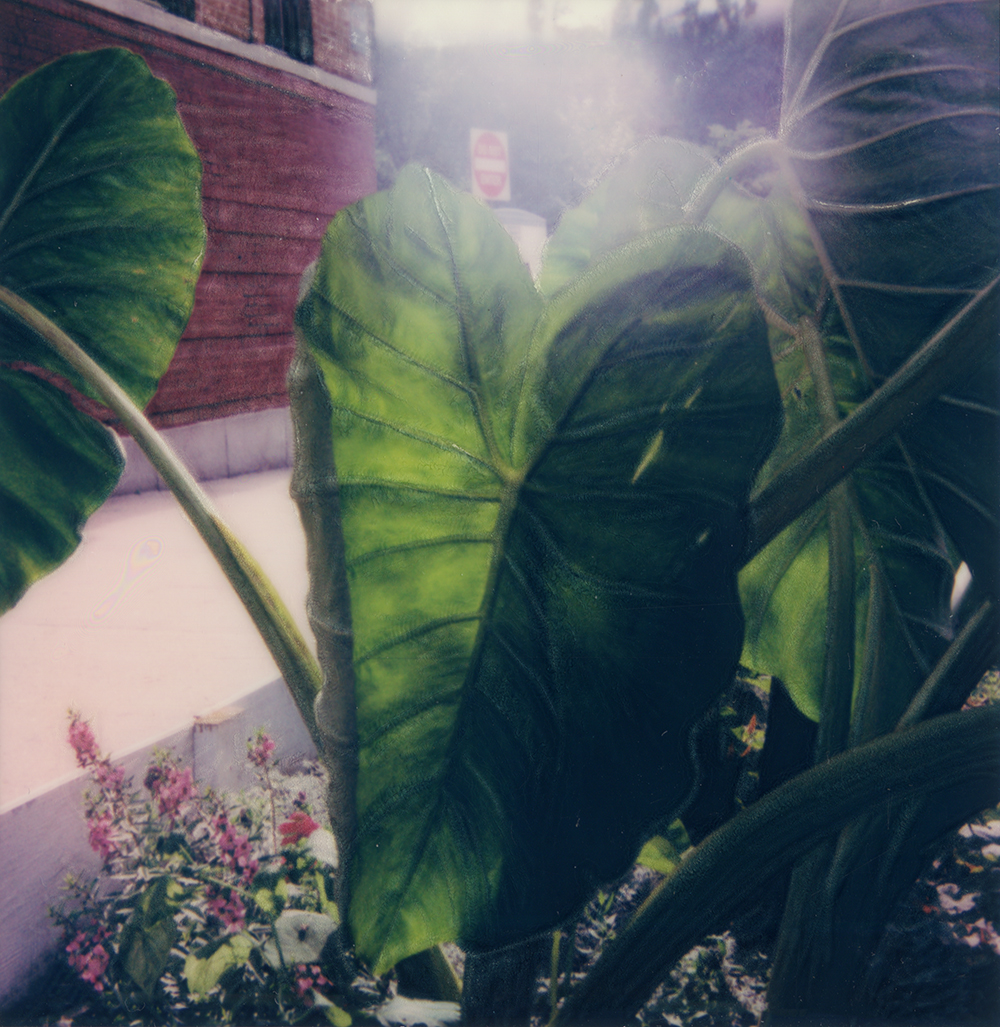 Elephant Ears, 2021, Polaroid photo print on canvas, 30 x 31”