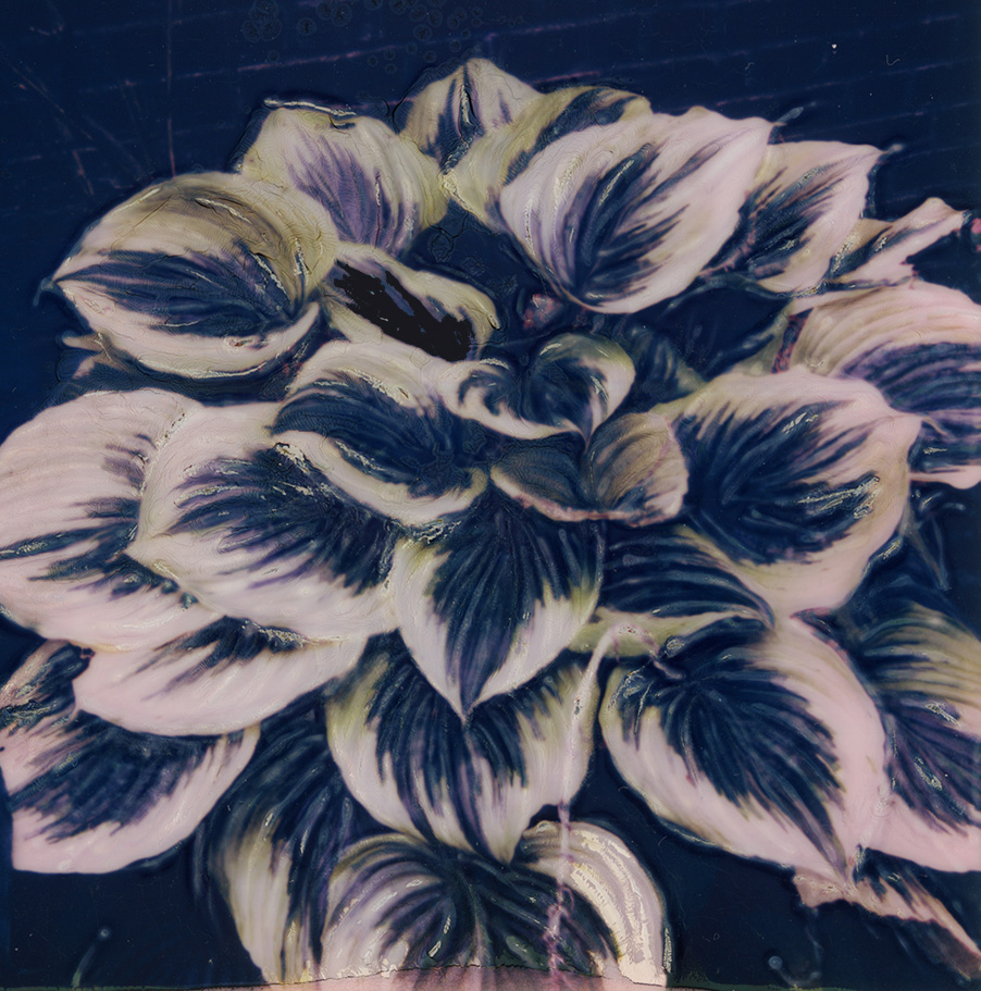 Hosta,2021, Polaroid photo print on canvas, 30 x 31”