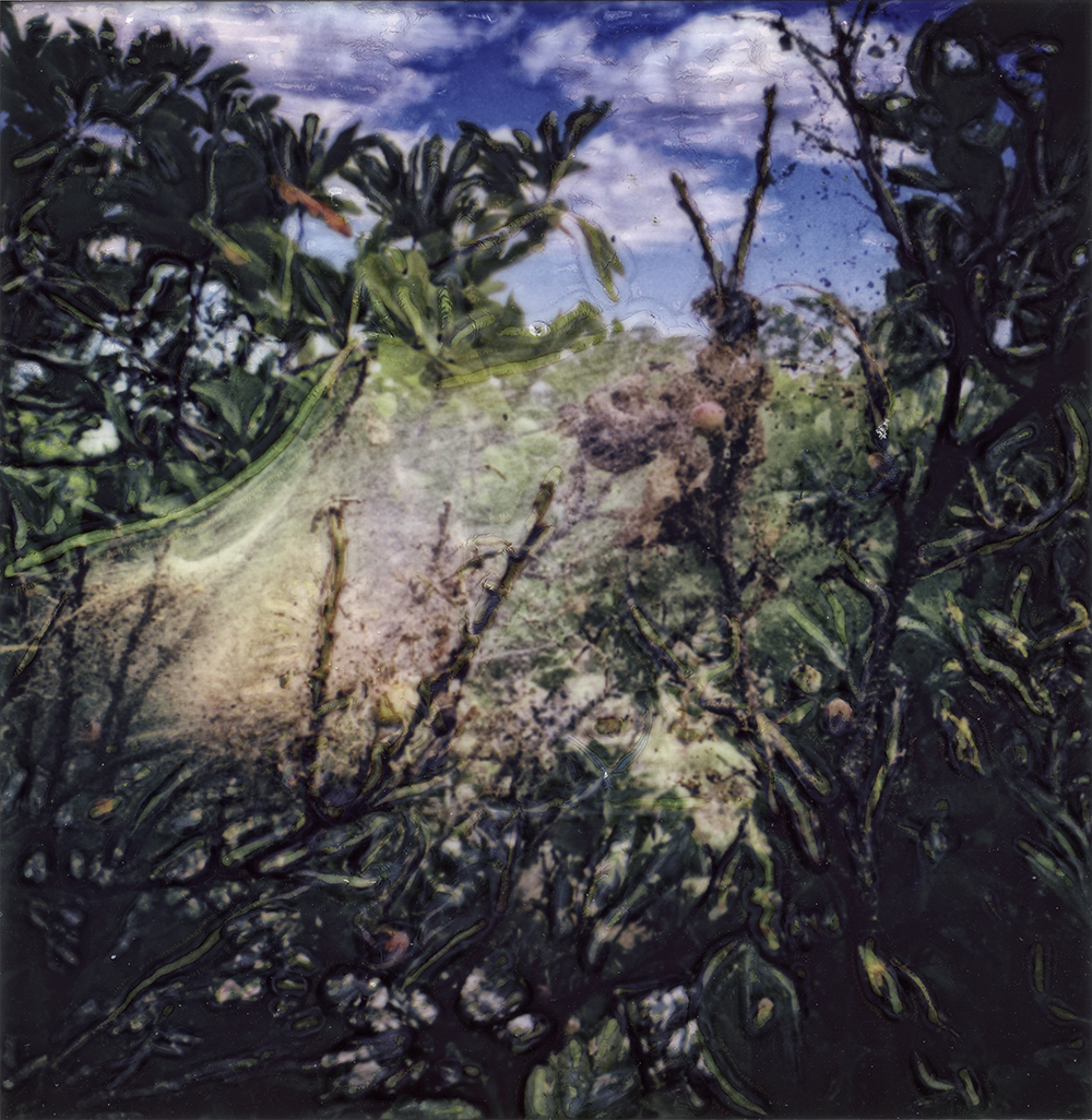 Beech Tree, Millbrook, 2024, manipulated Polaroid photograph, 3 x 3”