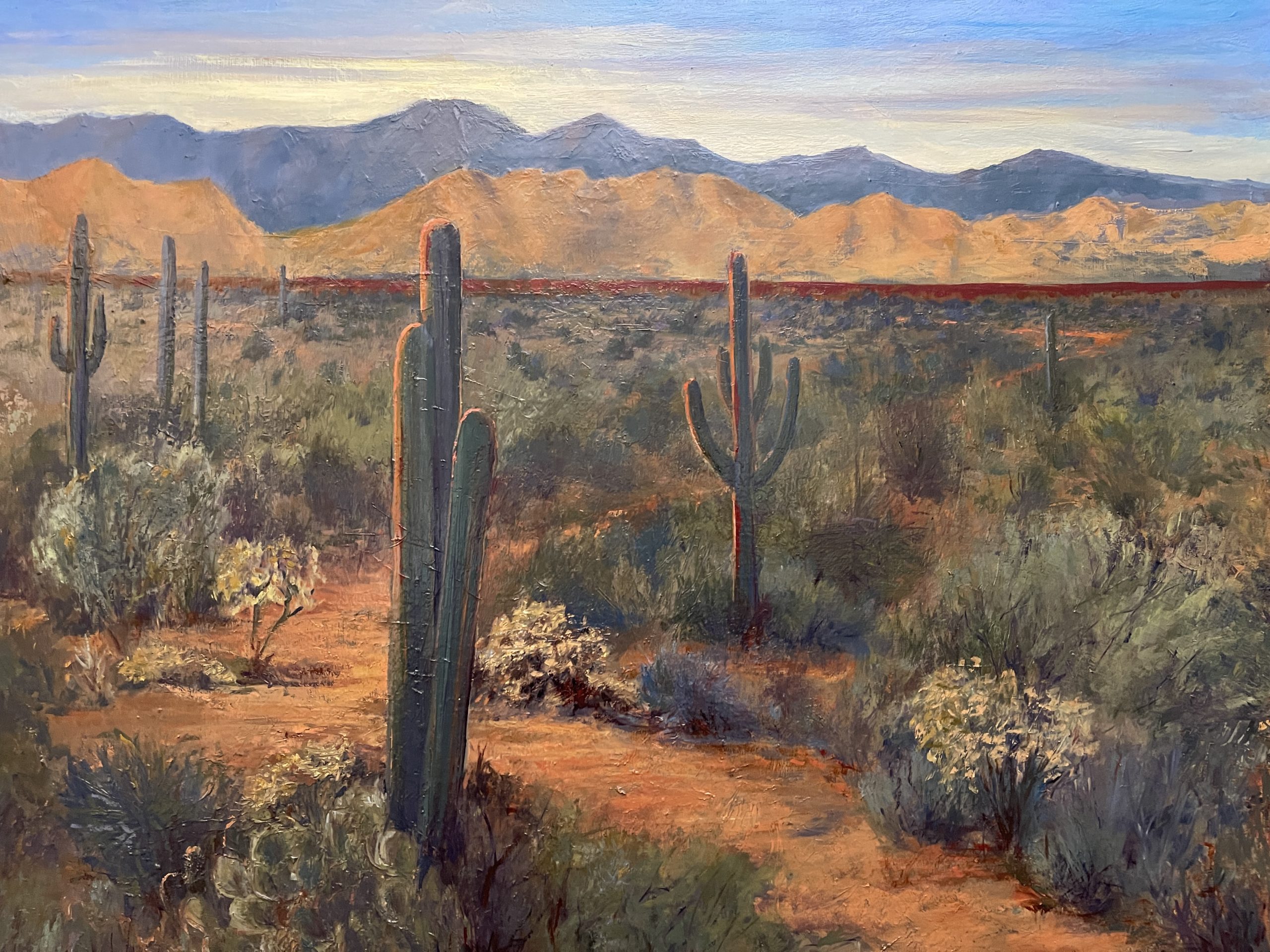 Ceres Gallery is pleased to present Refuge and Peril in the Borderlands by Jane Seavers – a New York, solo exhibition debut of desert landscape and portrait oil paintings. The vast arid Sonoran Desert, stretching across the borderlands in Mexico and the US, has had a unique place in American art for over a century. Jane Seavers’ new collection invites us to see the iconic Southwest landscape with fresh eyes.
