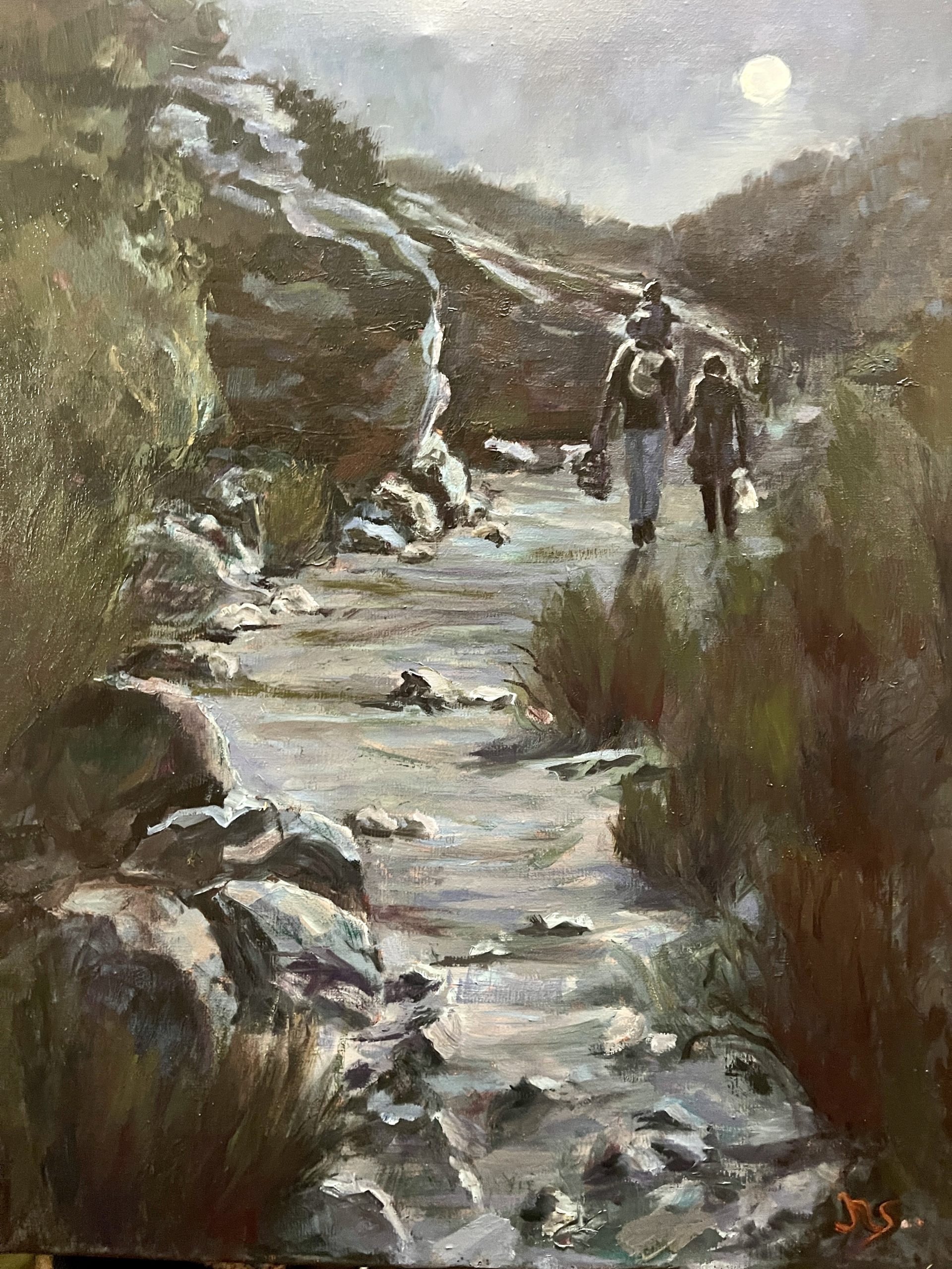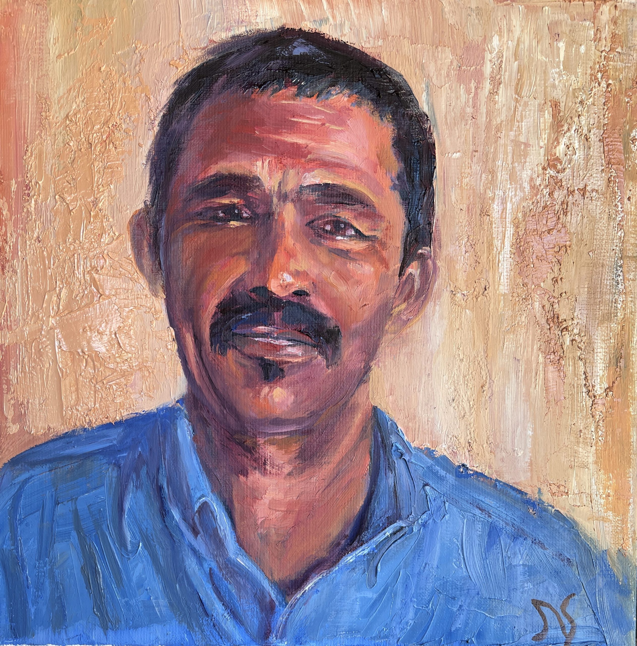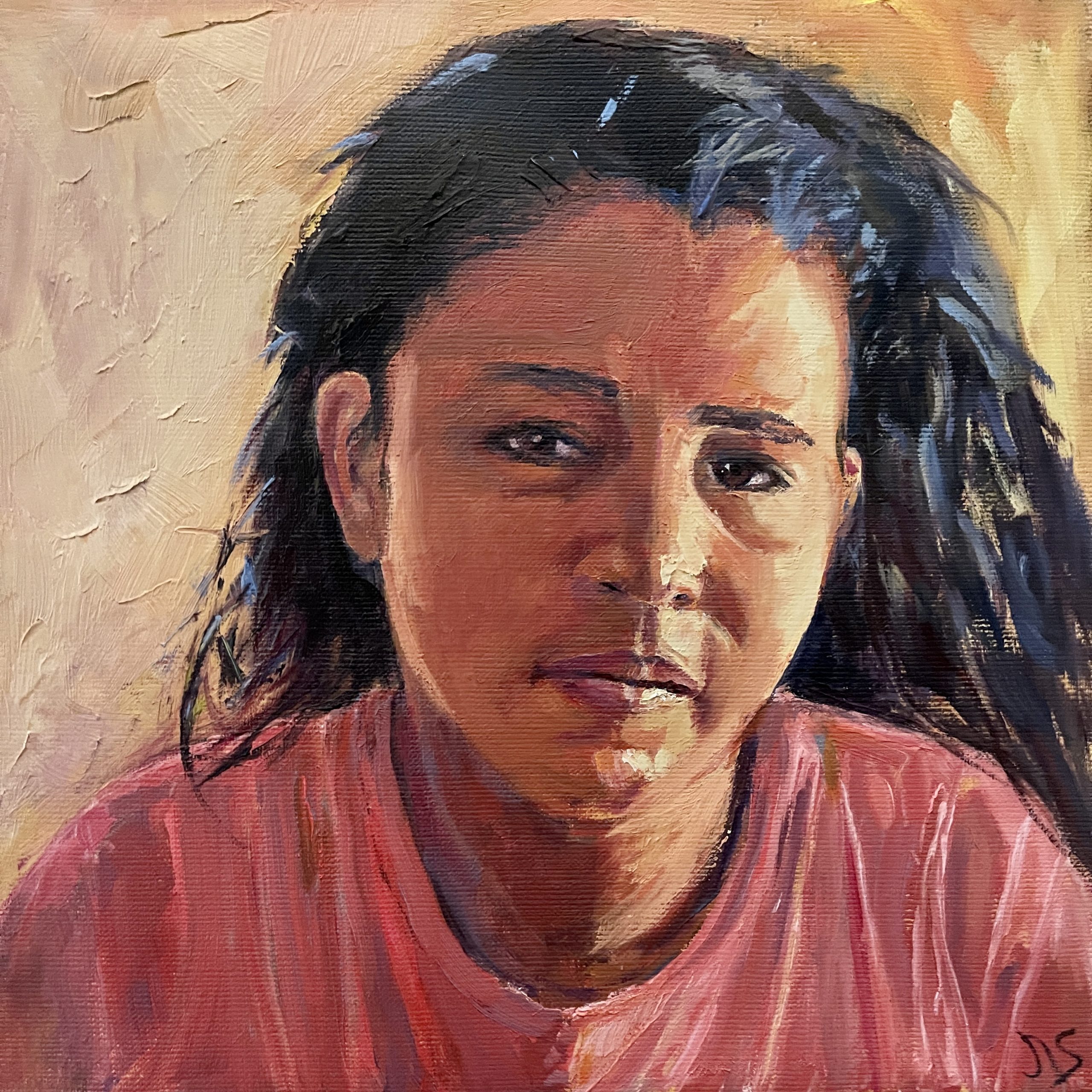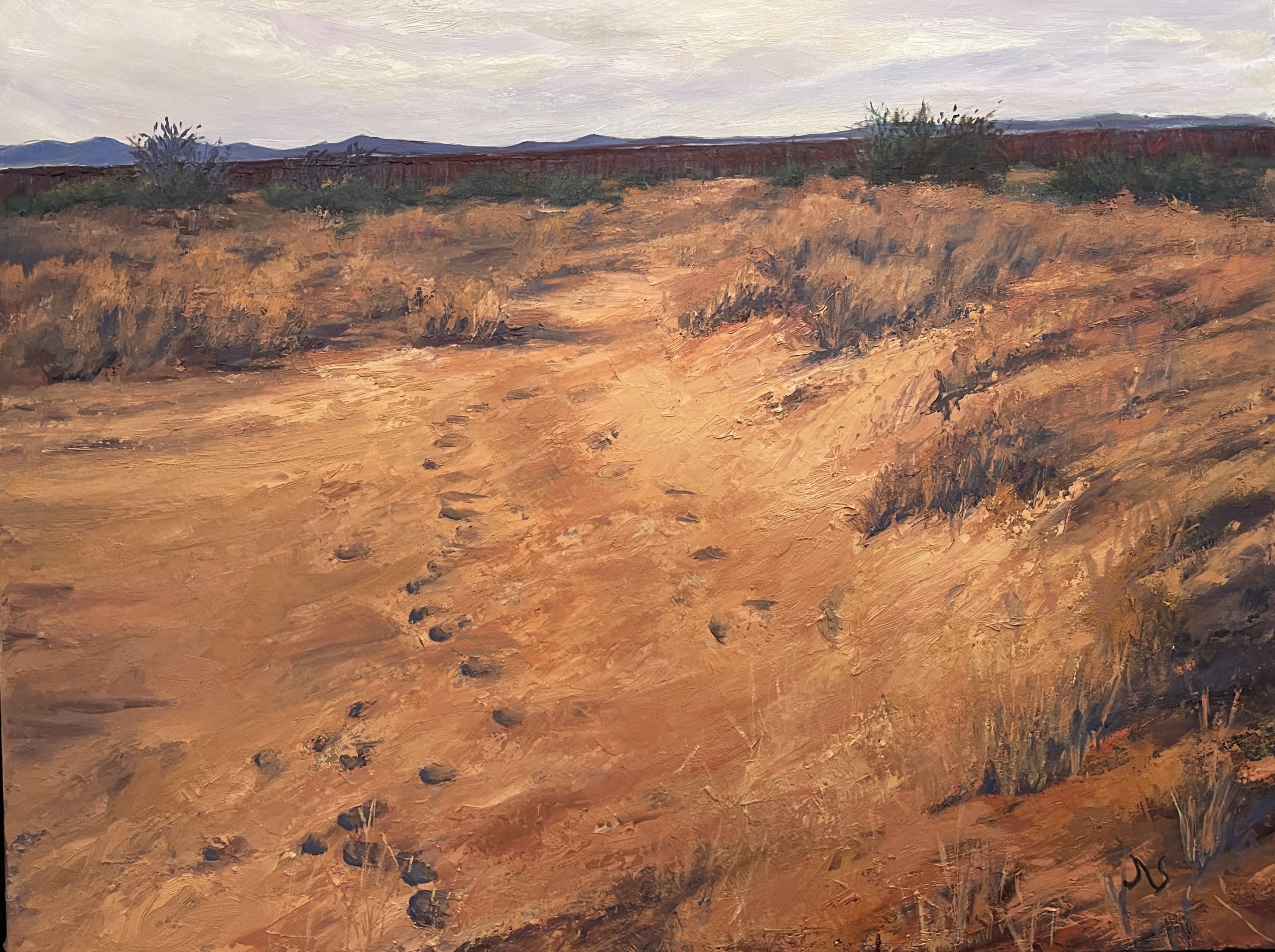 Jane Seavers was born and raised on a multi-generational farm in Wisconsin. After formal education and work as a nurse-midwife/family nurse practitioner, in California, New Mexico and indigenous communities in Alaska and Guatemala, she began a lifetime dream to study oil painting through college courses, workshops, and personal mentors. Seavers has lived and worked in New Mexico near the US/Mexico border since 1980. In 2018 Jane began to paint the landscape of the borderlands. As more and more migrants made their perilous journey to the border, many, including children, dying enroute, Jane was moved to accompany Humane Borders to deliver water to key areas of the desert to sustain those migrants as they continue to flee from impossible circumstances at home. In 2019 Jane began volunteering weekly at the Deming Refugee Shelter. Inspired by the narratives of the migrants she encountered there; she began to paint their portraits.