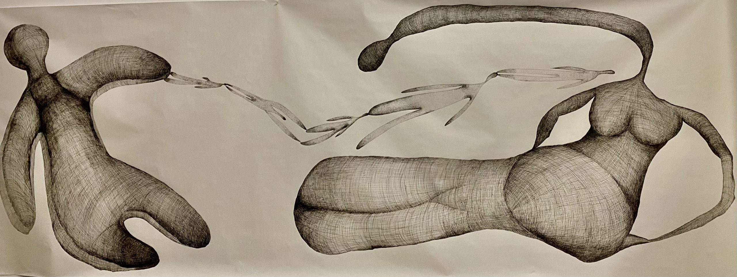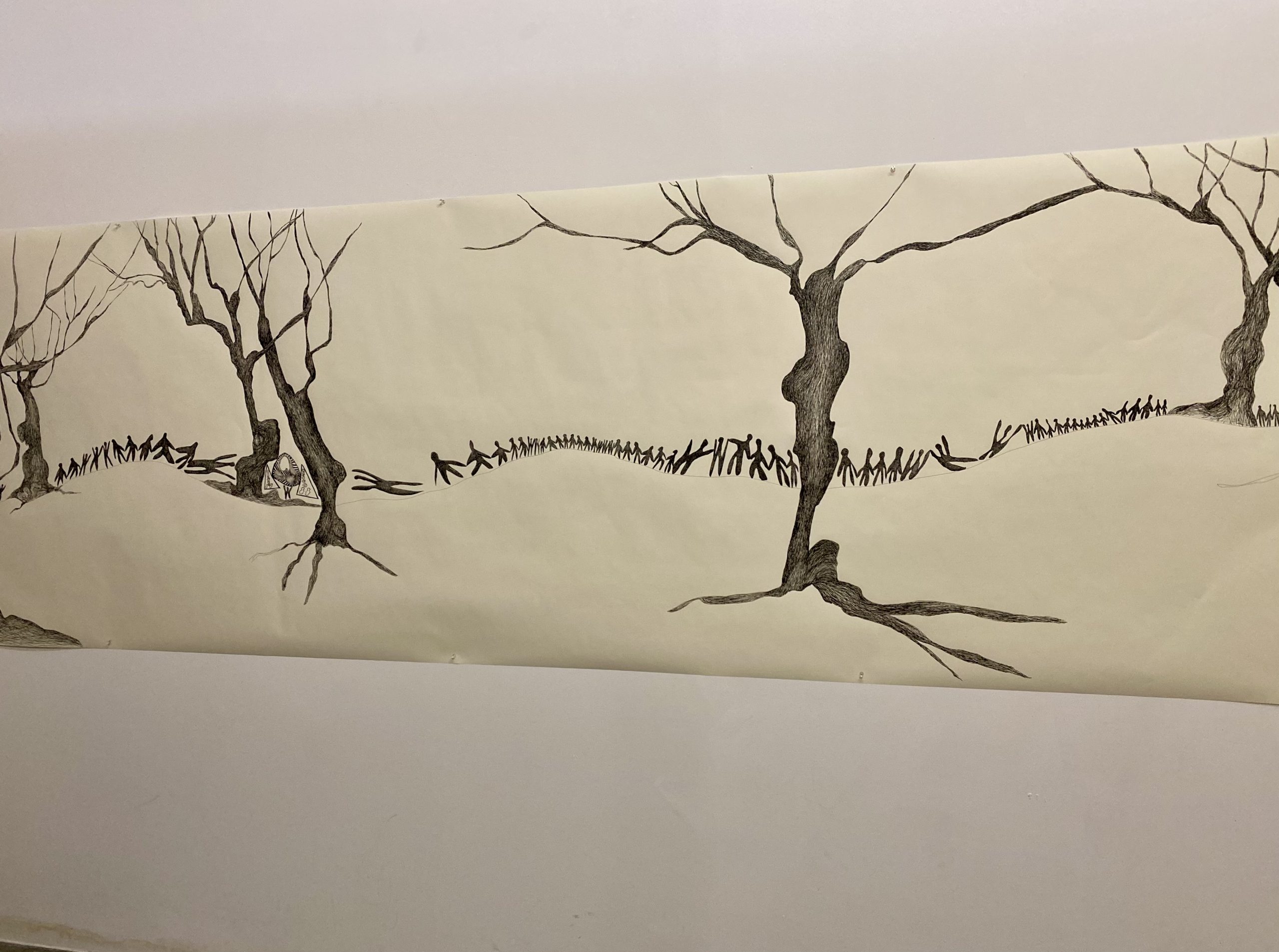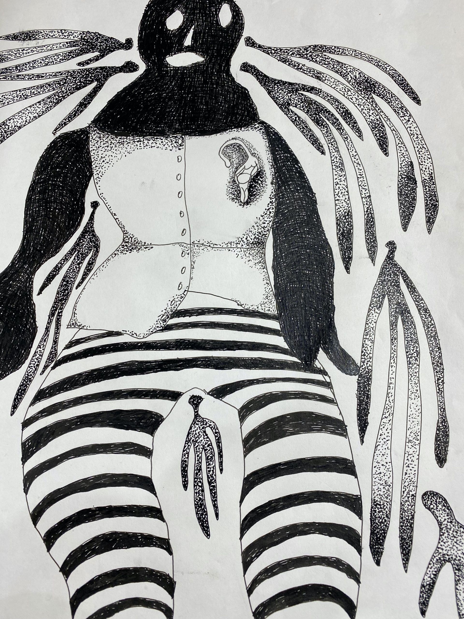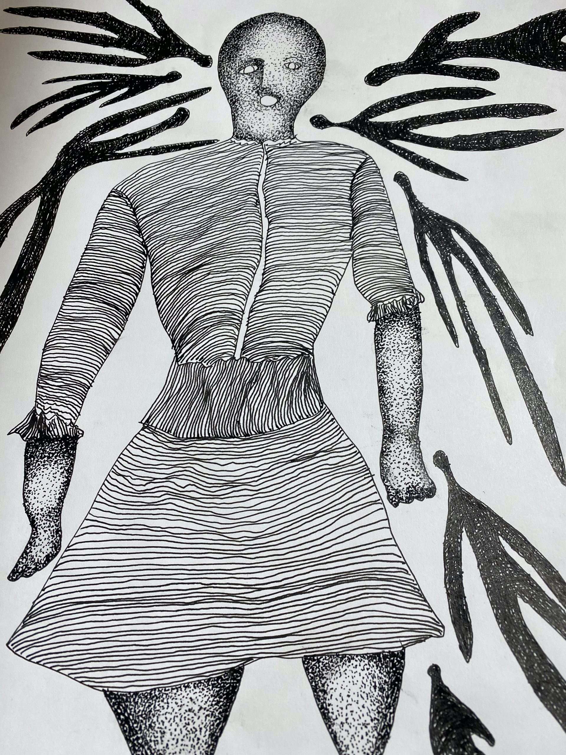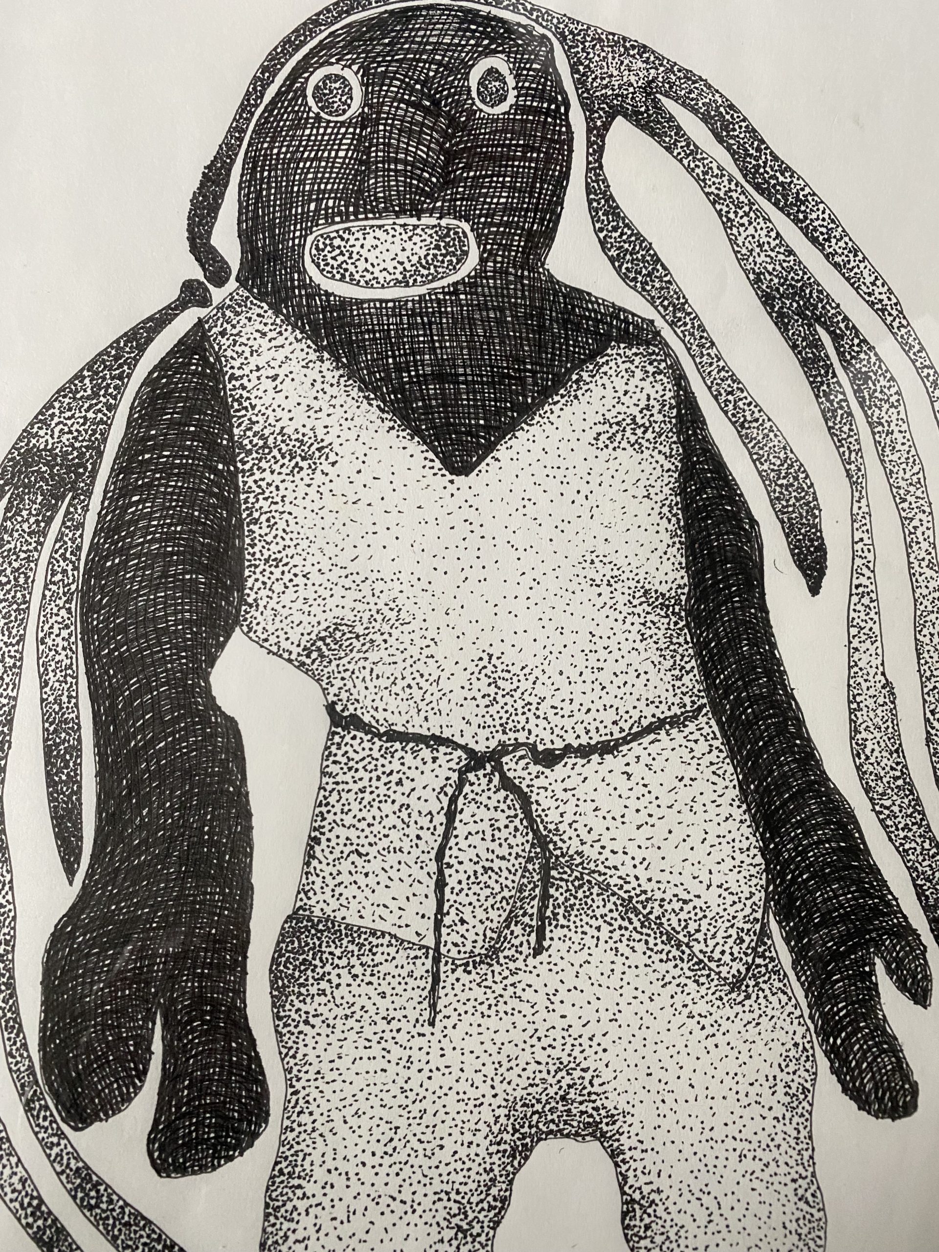 This challenge has held me in its grip on and off for 40 years and has been instrumental in my creation of my doll culture. It has inspired me to make many many dolls from fabric I have collected on my travels around the world and has spurred me to make many drawings, paintings and installations that tell the stories and myths of the dolls that inhabit the imaginary doll world I have created for them.