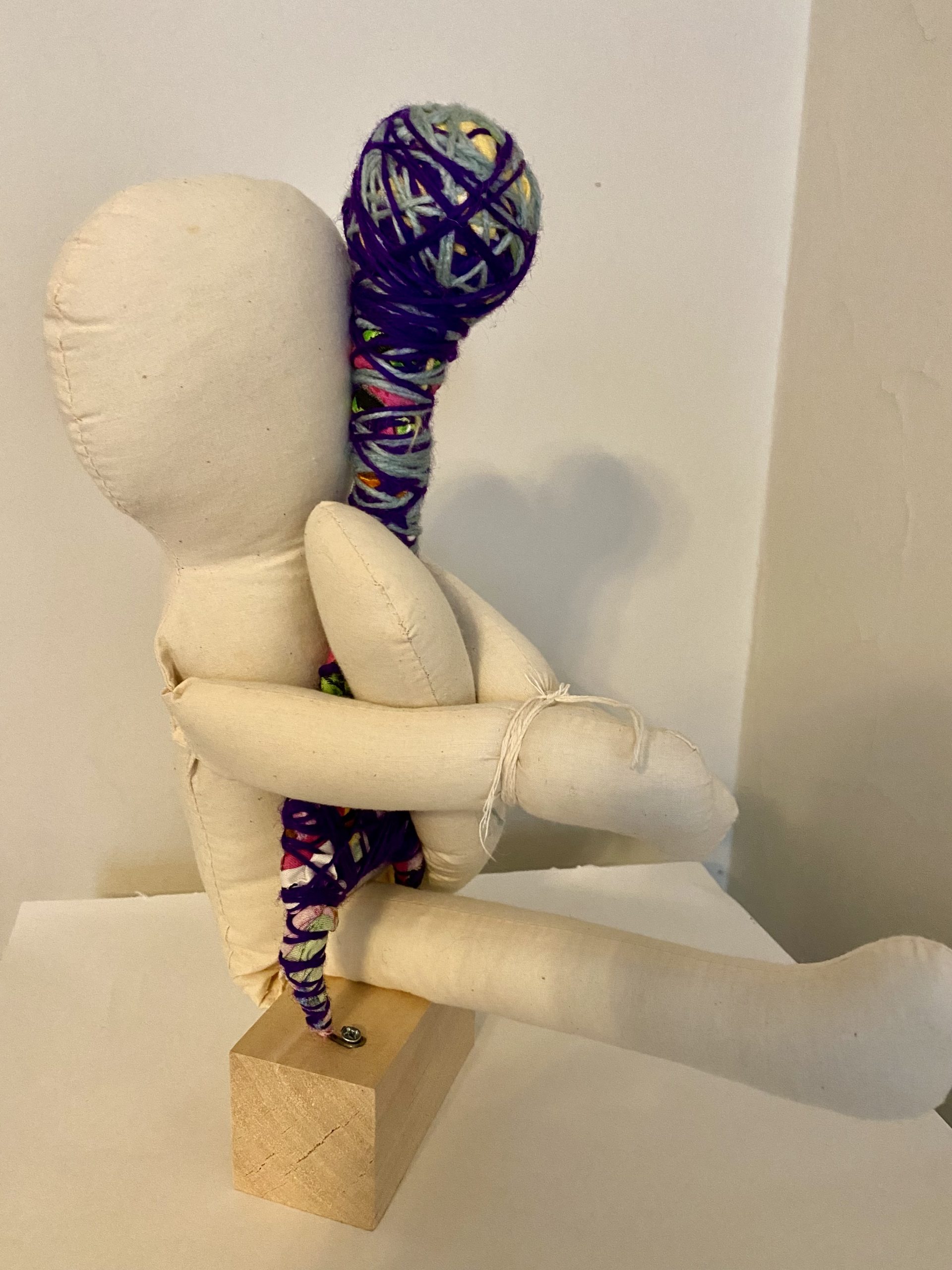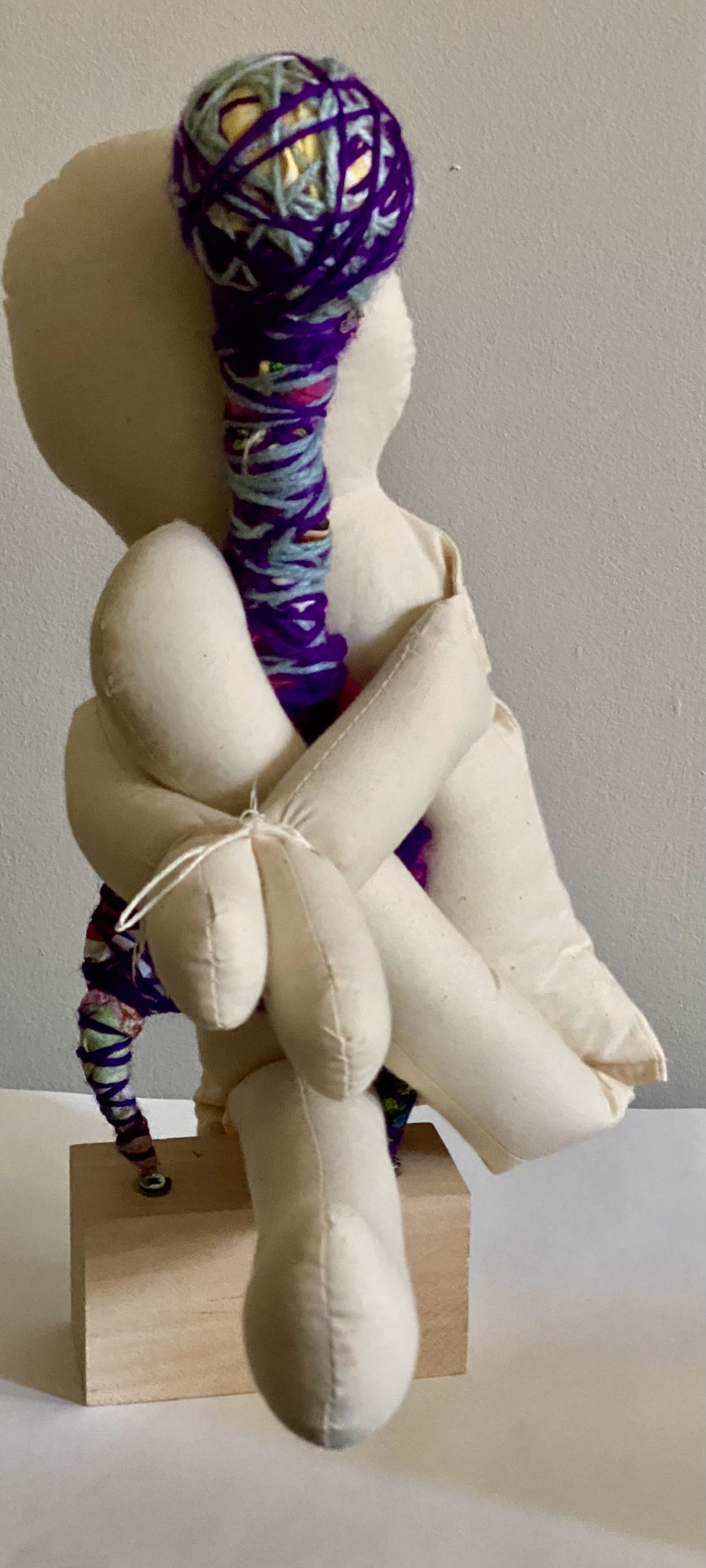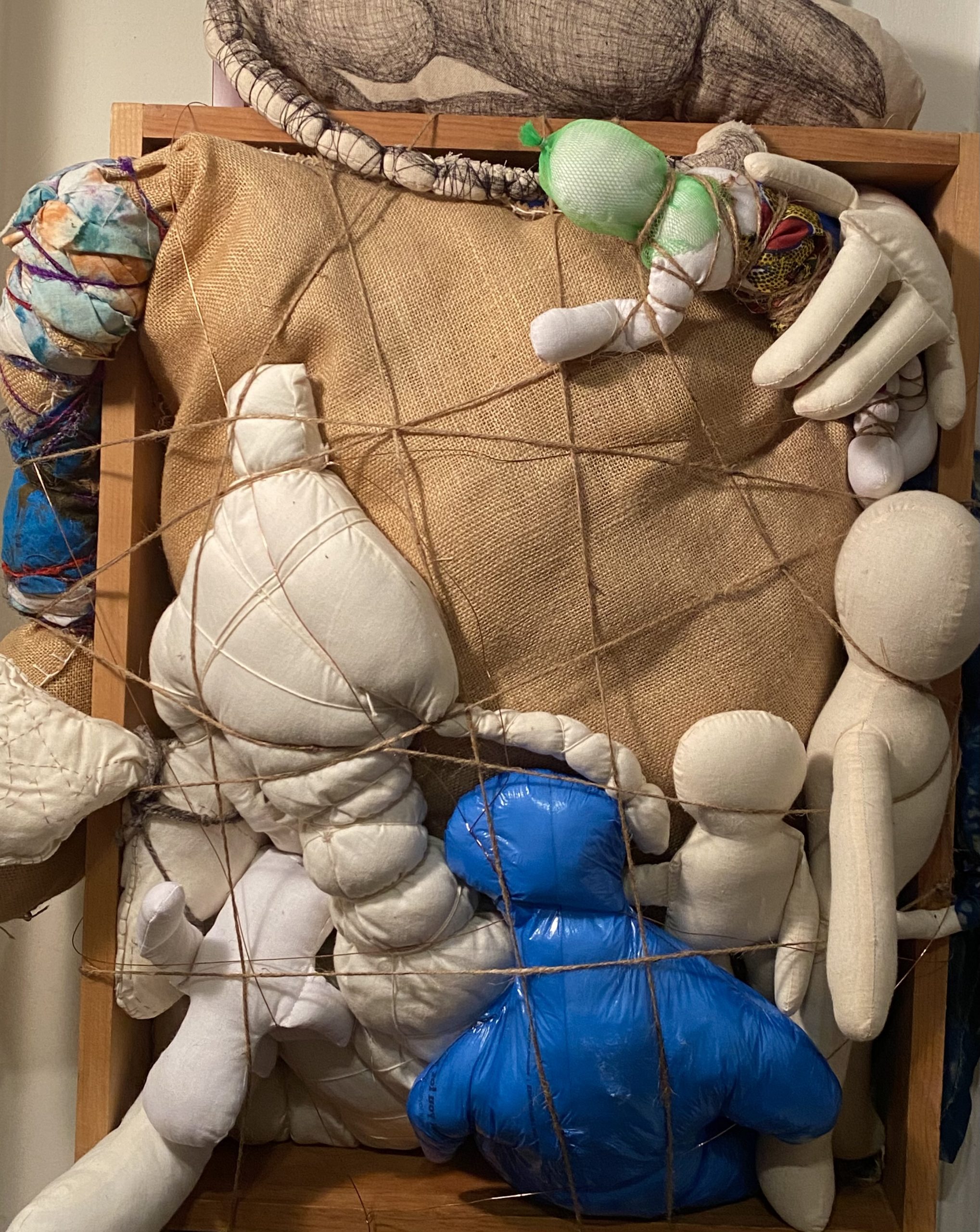 Liz Ndoye is a mixed media artist who enjoys using found and recycled materials to create cross-cultural artifacts like her dolls. Made from fabrics and bits and pieces of stuff that she has collected during her travels all over the world, as well as, everyday “throwaways” like plastic bags, they simulate objects from traditional cultures.